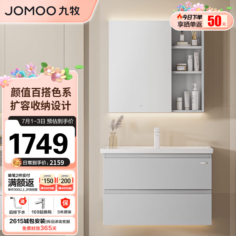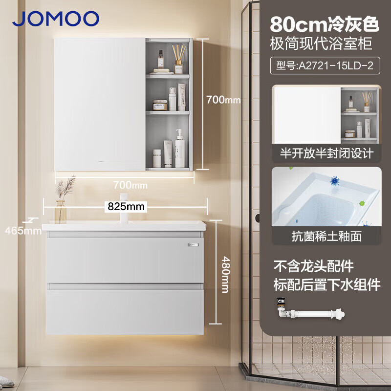 九牧(JOMOO)浴室柜 陶瓷一体盆抗菌洗脸盆柜组合双抽冷灰80cm A2721-15LD-2价格:1949.00元!
