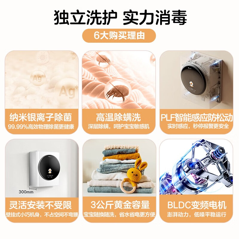 小天鹅(LittleSwan)3KG壁挂洗衣机 30V820MW 迷你滚筒洗衣机全自动 儿童洗衣机小型挂壁式婴儿洗衣机 内衣裤洗衣机价格:1899.00元!