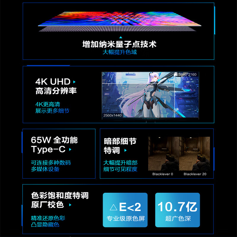 4、包装很好快递很快造型好看显示效果很好背光很帅支架可以调节高度和旋转非常丝滑可惜桌子空间小,自己换了个支架臂用了段时间了,没啥问题