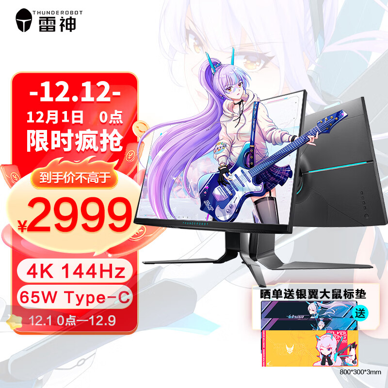 雷神 银翼 27英寸4K 144Hz IPS 65WType-C 纳米量子点HDMI2.1 HDR400电竞游戏显示器升降旋转/LU27F144L价格:3799.00元!
