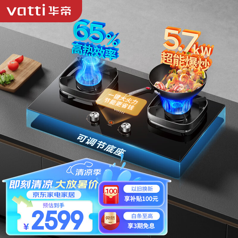 华帝(VATTI)【爆炒灶】燃气灶家用台式嵌入式5.7kW大火力高热效易打理龙卷火灶台灶具JZT-i10506H(天然气)价格:2599.00元!
