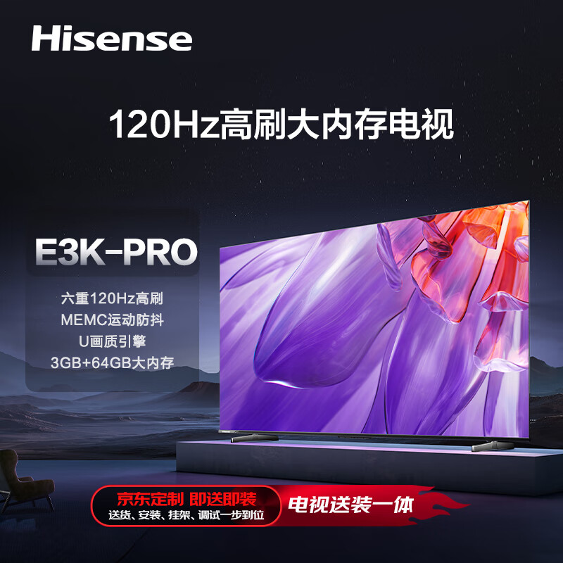 海信电视65E3K-PRO 65英寸【包安装版】 MEMC防抖 U画质引擎 智慧屏 液晶智能平板电视机价格:3138.00元!