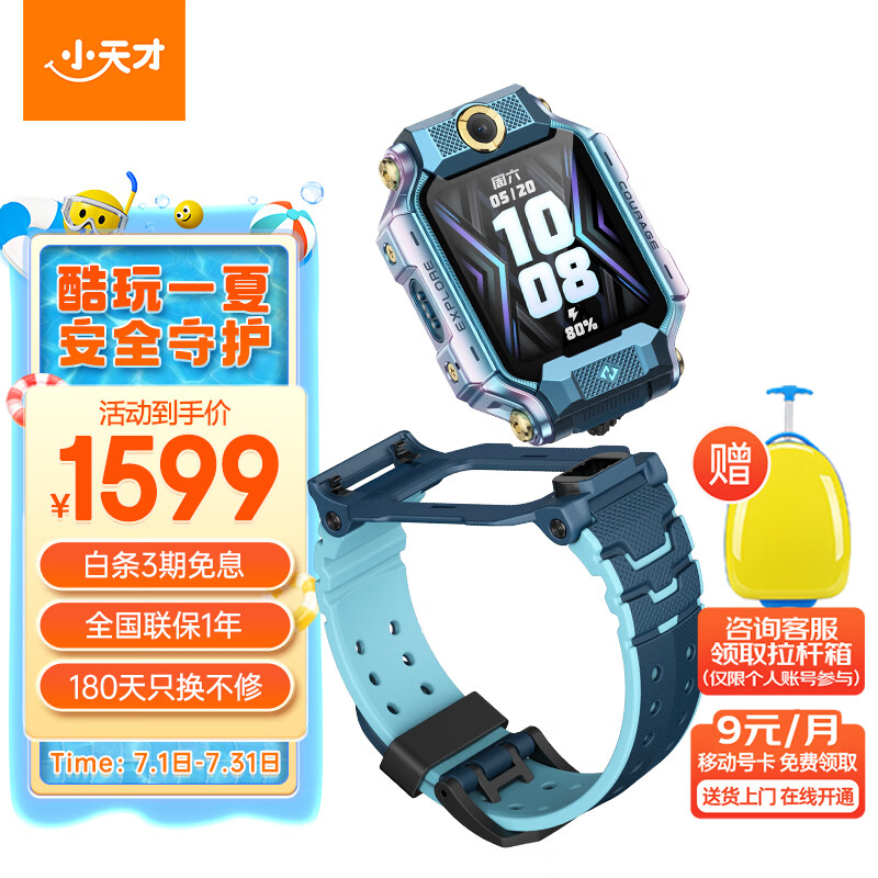 小天才儿童电话手表Z8A山湖蓝 防水GPS定位智能手表 学生儿童4G视频拍照双摄手表男女孩儿童节礼物价格:1599.00元!