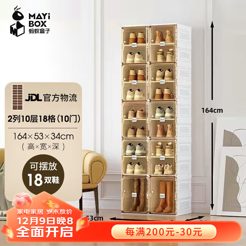 蚂蚁盒子(MAYIHEZI) 免安装可折叠透明塑料简易鞋柜门口收纳防尘防潮鞋盒2列10层18格价格:489.00元!