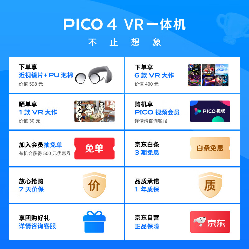 PICOVR 一体机 近视镜片套装 8+256G【乐享版】【依视路镜片】VR智能眼镜 XR设备头显 体感游戏机 AR价格:3348.00元!
