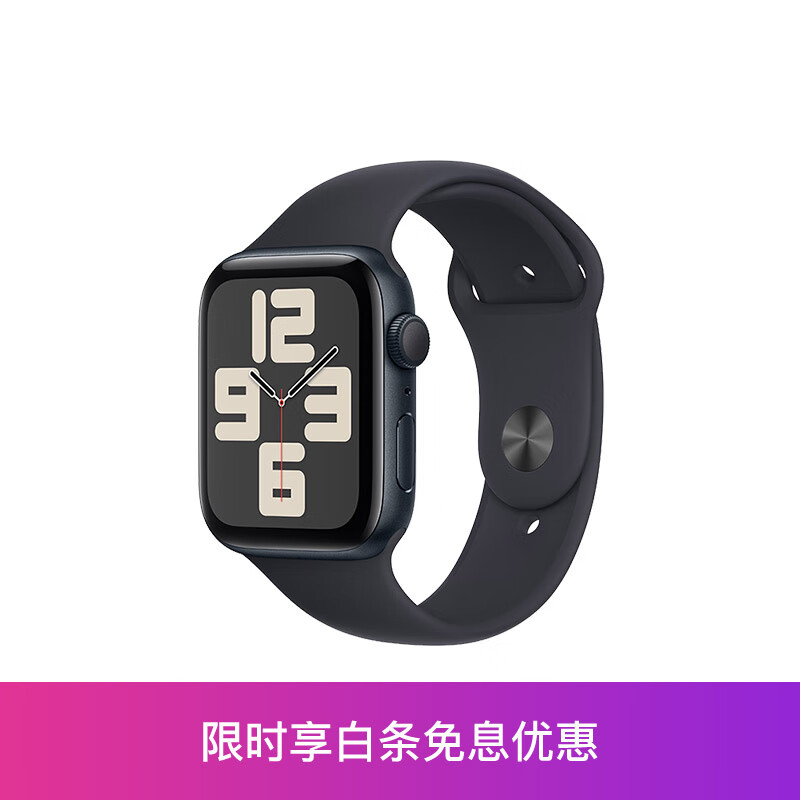 Apple/苹果 Watch SE 2023款智能手表GPS款44毫米午夜色铝金属表壳午夜色运动型表带S/M MRE73CH/A【免息版】价格:2199.00元!