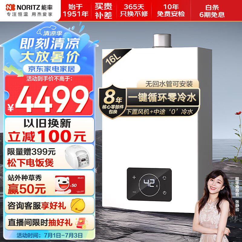 能率(NORITZ)零冷水燃气热水器16升 中途开关“0”冷水 降噪恒温GQ-16E5FEXQ(JSQ31-E5Q)天然气价格:4499.00元!