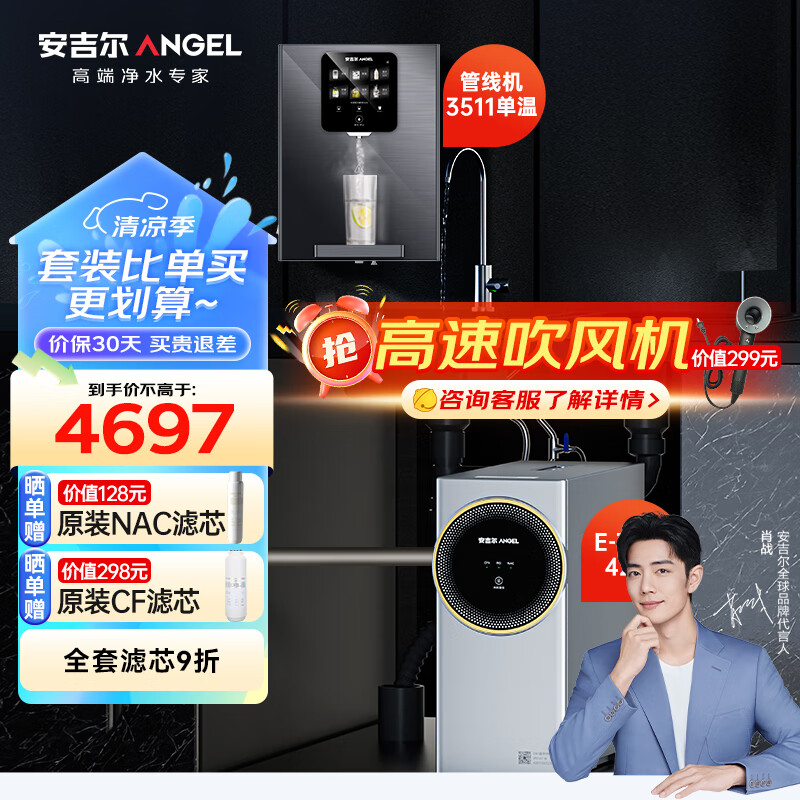 安吉尔净水器家用过滤器套装【E-tech4200+管线机3511】5年RO反渗透厨下式直饮机1600G流速体验价格:4697.00元!