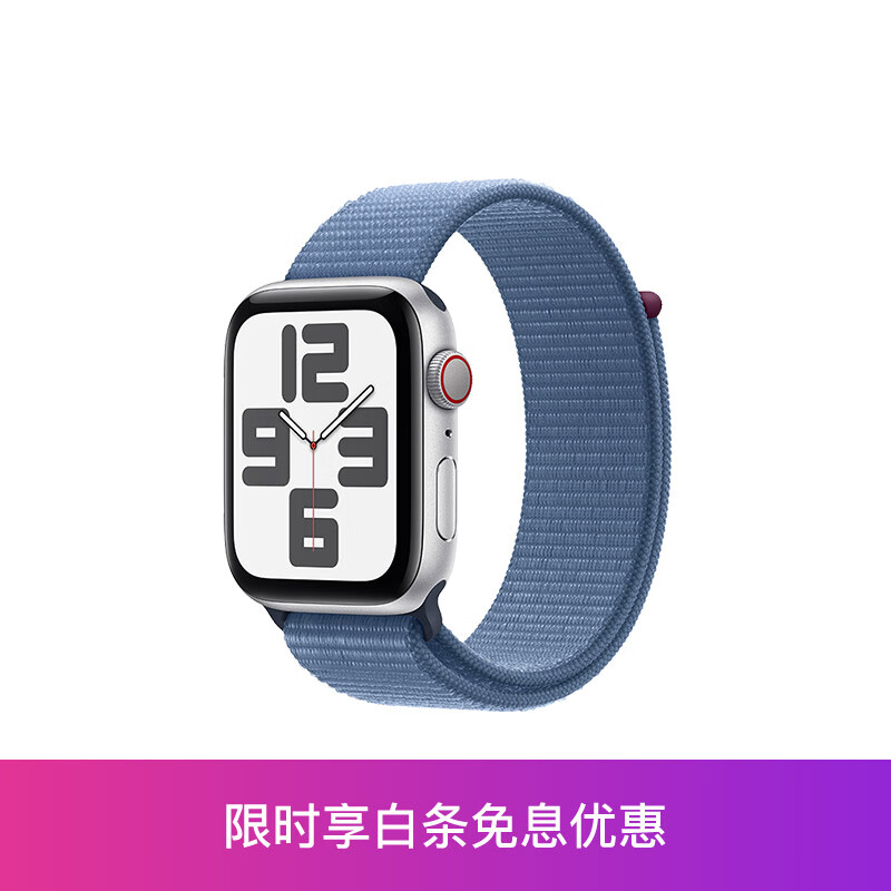 Apple/苹果 Watch SE 2023款智能手表 蜂窝款44毫米银色铝金属表壳凛蓝色回环式运动型表带MRGG3CH/A【免息版】价格:2599.00元!