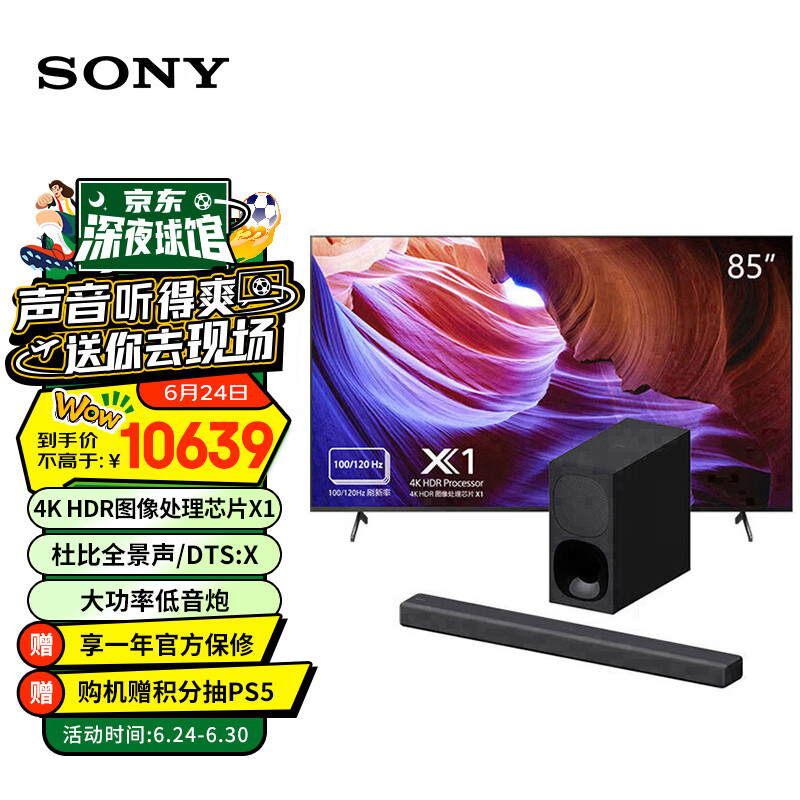 索尼(SONY)KD-85X85K+HT-G700 游戏畅玩套装 7.1.2声道音效 大功率无线低音炮 全景声 家庭影院 回音壁价格:9939.00元!