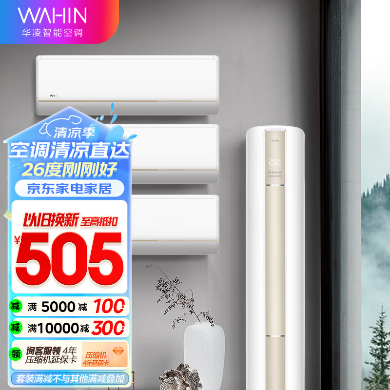 华凌华凌空调新一级 3匹大出风口变频柜机 KFR-72LW/N8JD1+新一级1.5匹变频挂机KFR-35GW/N8HE1Pro*3价格:11196.00元!