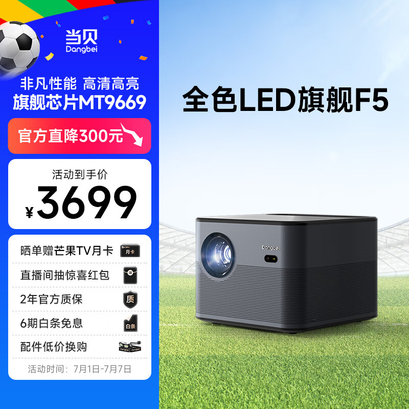 当贝 F5 投影仪 家用卧室投影机 家庭影院(全色LED旗舰 MT9669 双自动对焦 )价格:3699.00元!