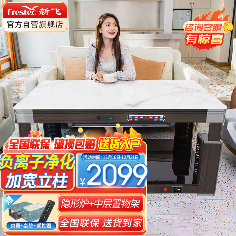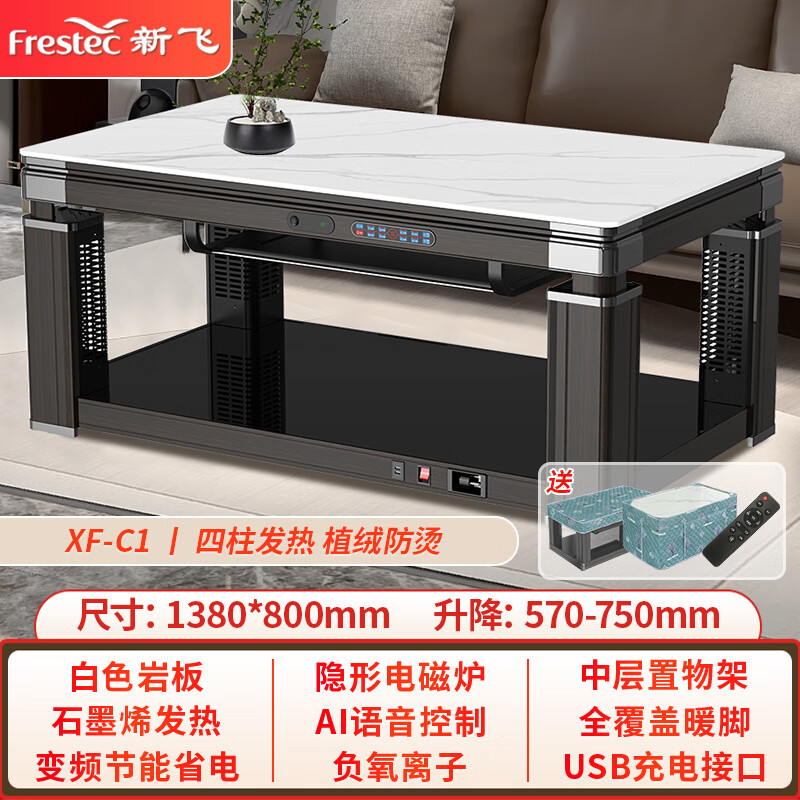 1、新飞1.38米电暖桌电烤火炉茶几带升降正品语音控制取暖器家用电热桌子变频多功能节能取暖餐桌烤火桌XF-C1,我买的第二款烤火桌了,性价比挺高的,总体来说挺好的,