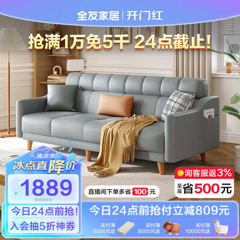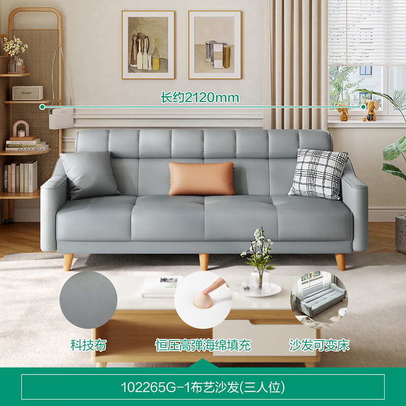 全友家居 现代简约布艺沙发客厅三人位小户型沙发床一体两用102265价格:2698.57元!
