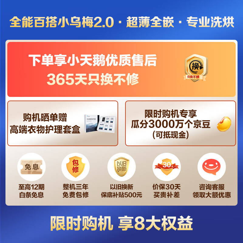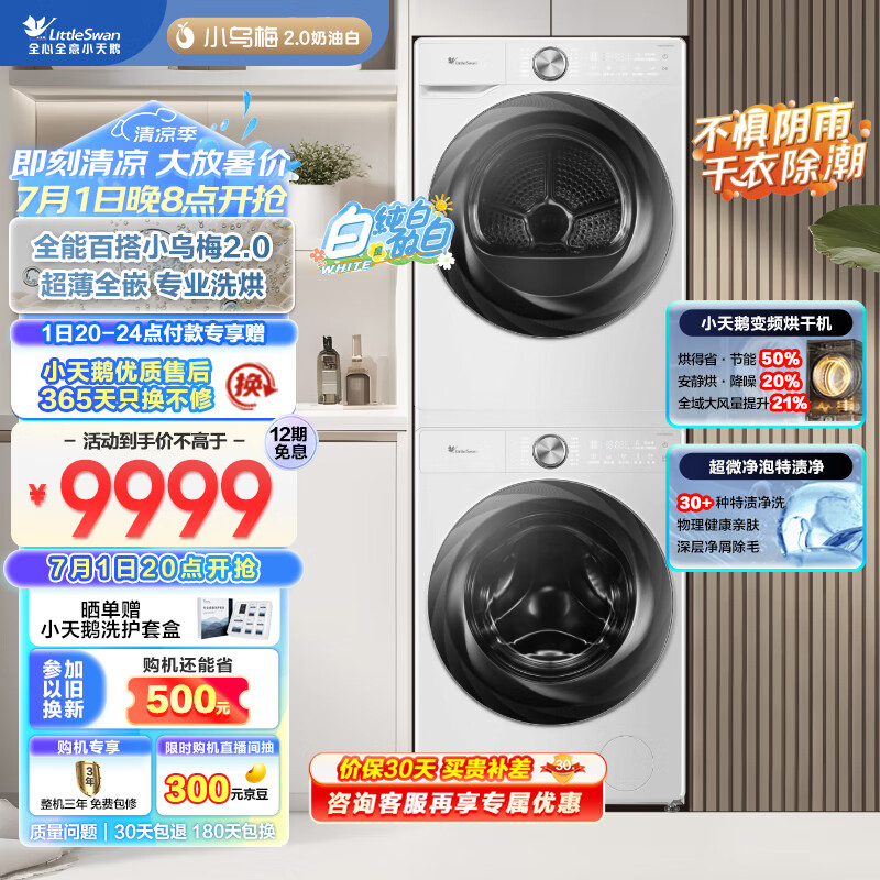 小天鹅(LittleSwan)洗烘套装 10KG滚筒洗衣机+变频热泵烘干机 超薄全嵌【小乌梅2.0奶油白】TG100S83PROW+83PROW价格:9999.00元!