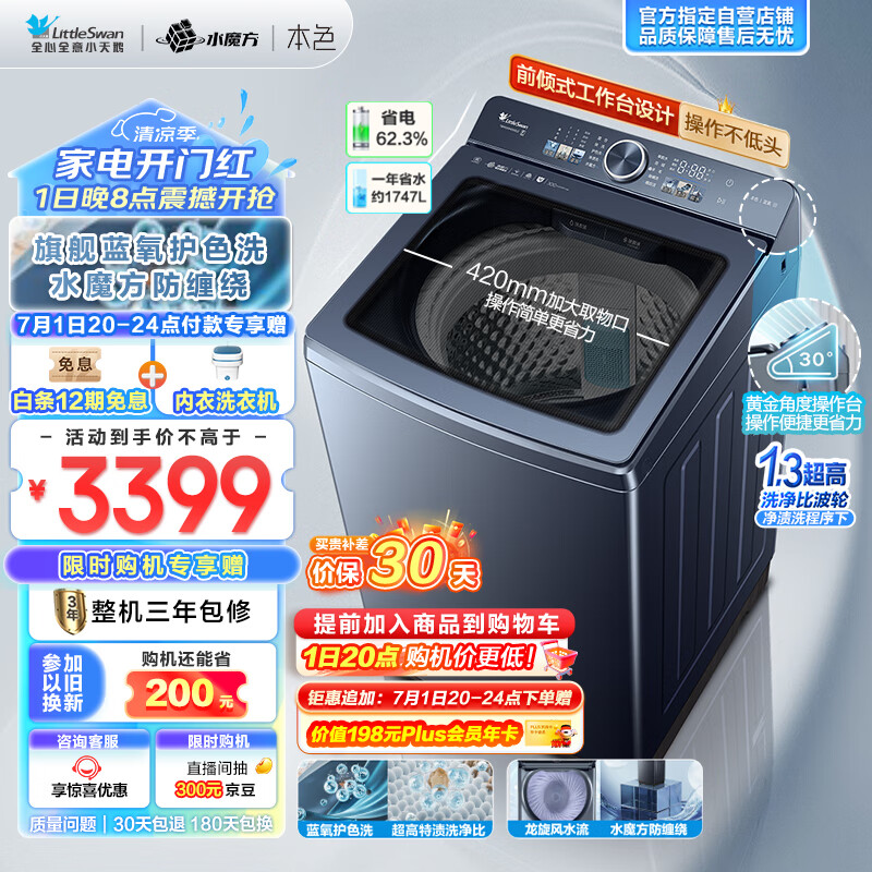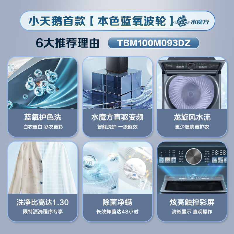 小天鹅(LittleSwan)波轮洗衣机全自动 本色蓝氧【TBM100M093DZ】水魔方龙旋风 去渍护色洗 纳米银除菌 炫彩大屏10公斤价格:3599.00元!