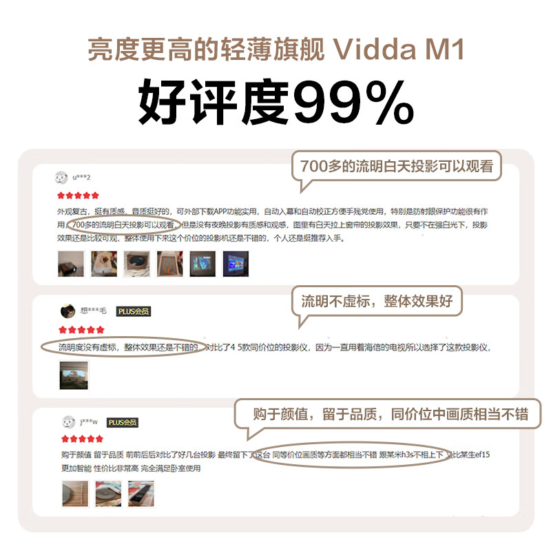 Vidda M1 海信投影仪家用 轻薄旗舰便携智能投影机(万元级CPU 同级别更高亮 Vi-AI智能校正 4G大运存)价格:2499.00元!