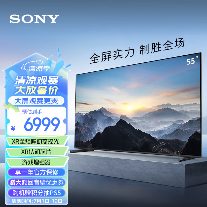 索尼(SONY)【官方直营】XR-55X90L 55英寸 屏4K超高清HDR 游戏电视 XR认知芯片 4K/120fps 京配上门价格:6999.00元!