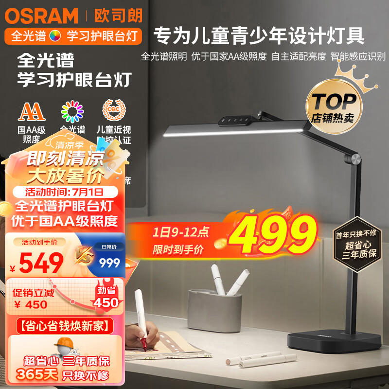 欧司朗(OSRAM)台灯护眼学习全光谱台灯学生学习专用阅读类太阳光儿童卧室床头灯价格:999.00元!
