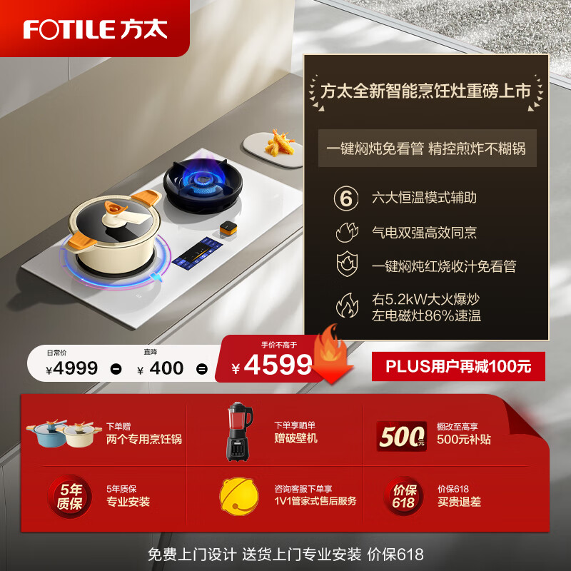 方太(FOTILE)智能烹饪灶具 燃气灶 天然气 气电两用定时灶 一键收汁托管 焖炖免看 恒温烹饪 高效同烹DA10价格:4599.00元!