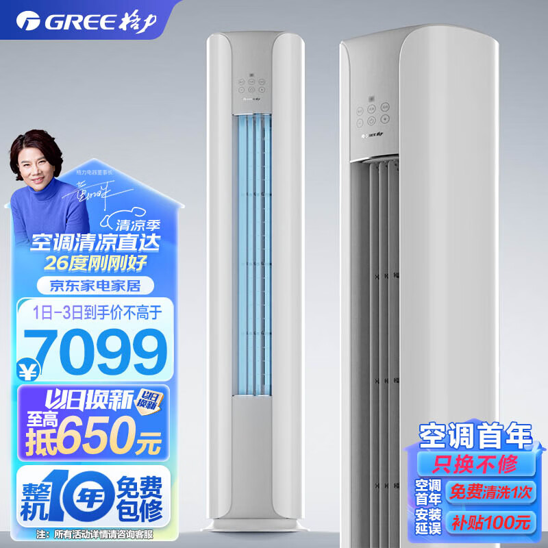 格力(GREE)空调 京东小家智能生态 3匹 云颜 新1级能效 客厅空调立式空调柜机KFR-72LW/NhPa1BAj价格:7099.00元!