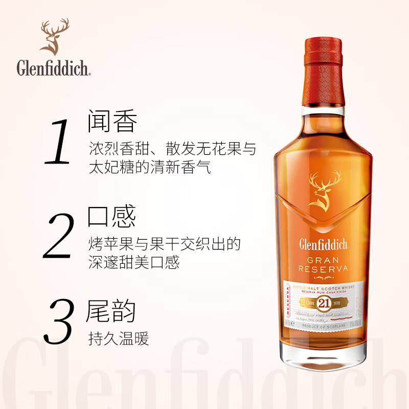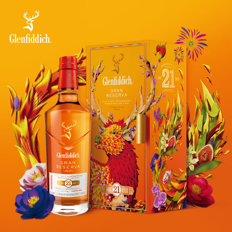 格兰菲迪(GLENFIDDICH)21年苏格兰单一麦芽威士忌洋酒700ml福鹿生花礼盒价格:1700.00元!