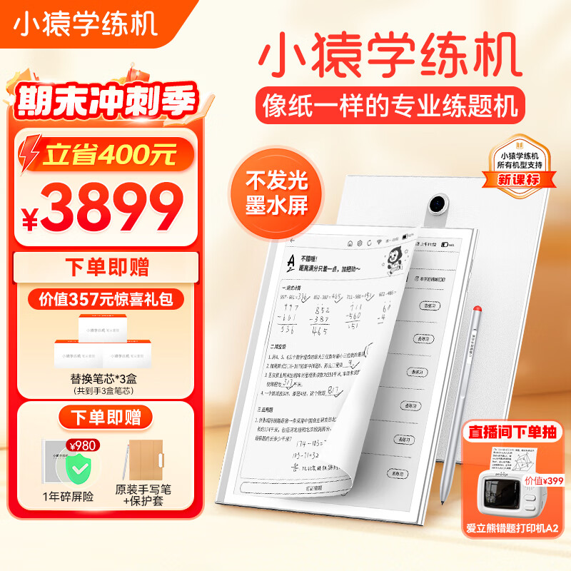 小猿学练机 旗舰款 10.3英寸墨水屏 教材同步 错题本 学生平板 AI学习机 小猿智能练习本S2 电纸书价格:4299.00元!