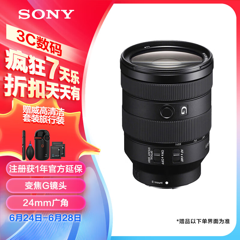 索尼(SONY)FE 24-105mm F4 全画幅标准变焦微单相机G镜头 E卡口(SEL24105G)价格:7421.65元!