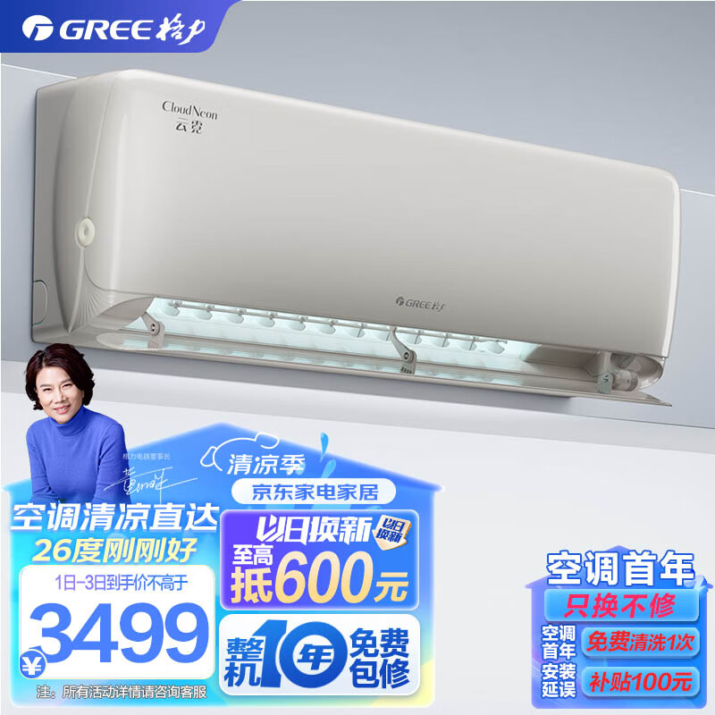 格力(GREE)空调 京东小家智能生态 大1匹 云霓 1级能效变频 壁挂式卧室挂机KFR-26GW/NhAn1BAj珊瑚玉色价格:3499.00元!