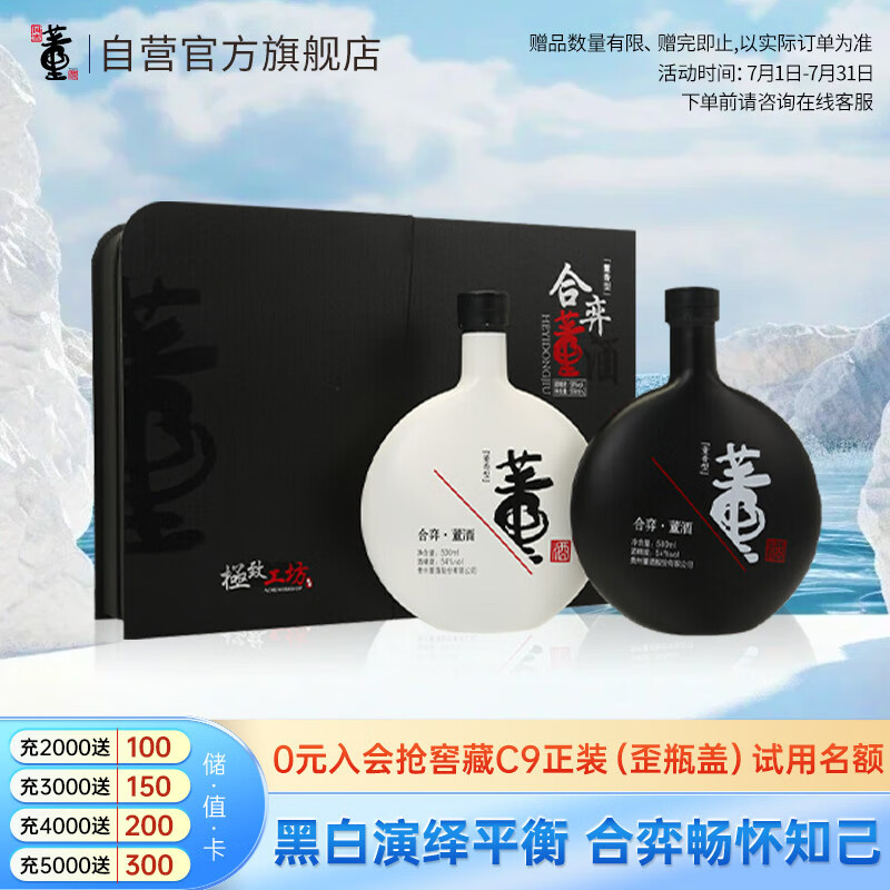 董酒 合弈 董香型白酒 54度 500ml*2礼盒装价格:998.00元!