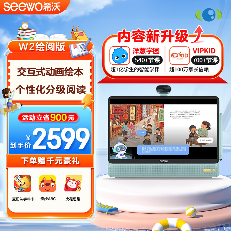希沃学习机W2 绘阅版薄荷绿6G+256G 15.6英寸防眩光 类纸护眼平板电脑 家教机 AI学生平板 点读机价格:2599.00元!