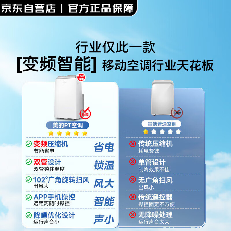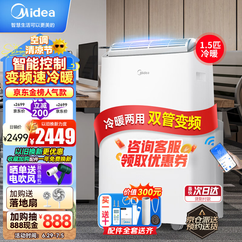 美的(Midea)移动空调冷暖1.5匹变频 京东小家智能生态 空调一体机免安装免排水 KYR-35/BP3N8Y-PT 京仓派送价格:2499.00元!