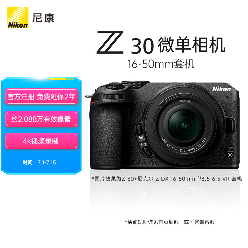 尼康(Nikon)Z30 微单相机 微单机身 无反相机 半画幅(Z DX 16-50mm f/3.5-6.3 VR)4K超高清视频价格:6799.00元!