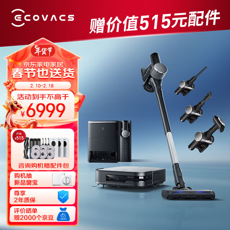科沃斯(ECOVACS)扫地机器人扫拖一体X2 COMBO高配基站+吸尘器自动清洗集尘 60°C热水洗拖布多功能一体机立体清洁价格:6999.00元!