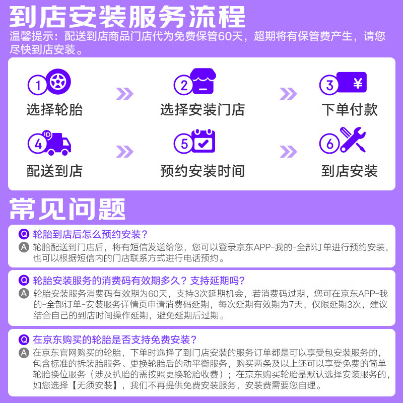 1、到货很快,轮胎直接发到店里,检查的十分仔细,师傅十分认真,还帮我查出来了车子的其他问题,换轮胎也是十分的认真,我很满意。