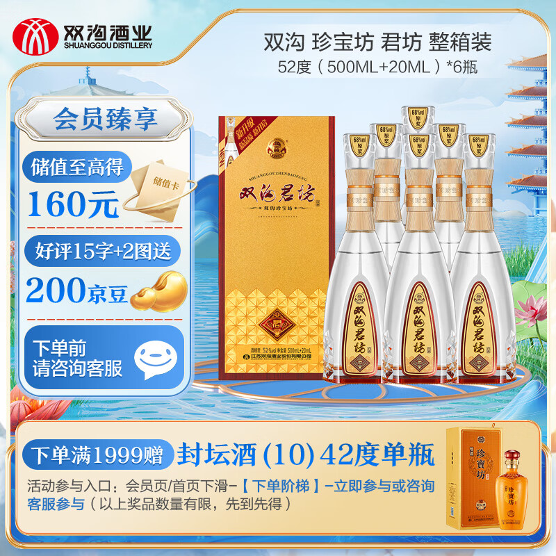 双沟 珍宝坊君坊 52度 (500ml+20ml)*6瓶 整箱装 浓香型白酒价格:788.00元!