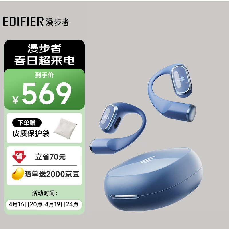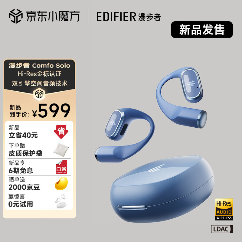 漫步者(EDIFIER)Comfo Solo开放式真无线蓝牙耳机 不入耳 运动跑步耳机 挂耳式蓝牙耳机 碧落蓝价格:569.00元!