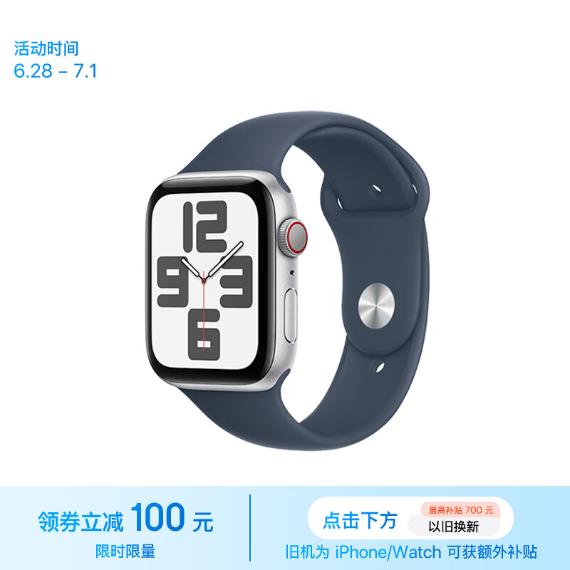 Apple/苹果 Watch SE 2023款智能手表GPS+蜂窝款44毫米银色铝金属表壳风暴蓝色运动型表带M/L MRHK3CH/A价格:2599.00元!