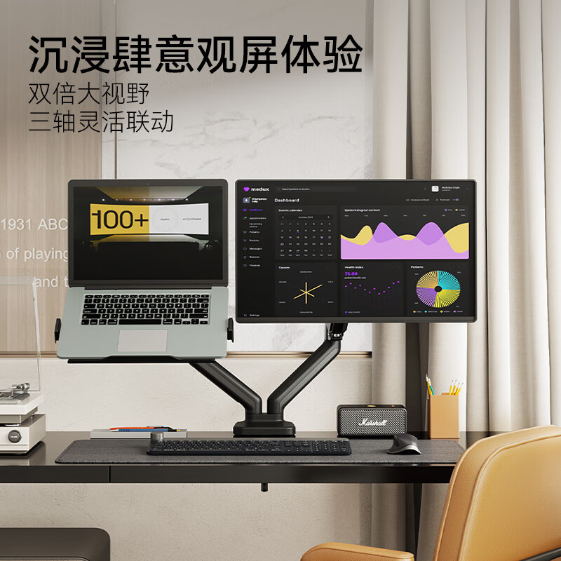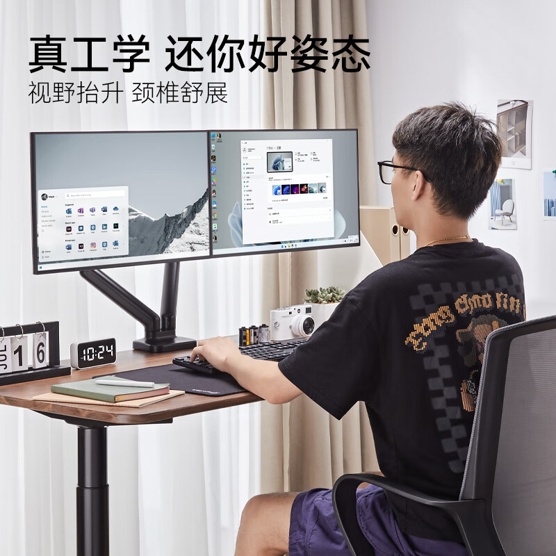 松能显示器支架双屏 显示屏支架双屏 显示器增高架双屏幕 旋转伸缩底座 显示器支架臂 电脑支架台式 T6JD-2B价格:249.00元!