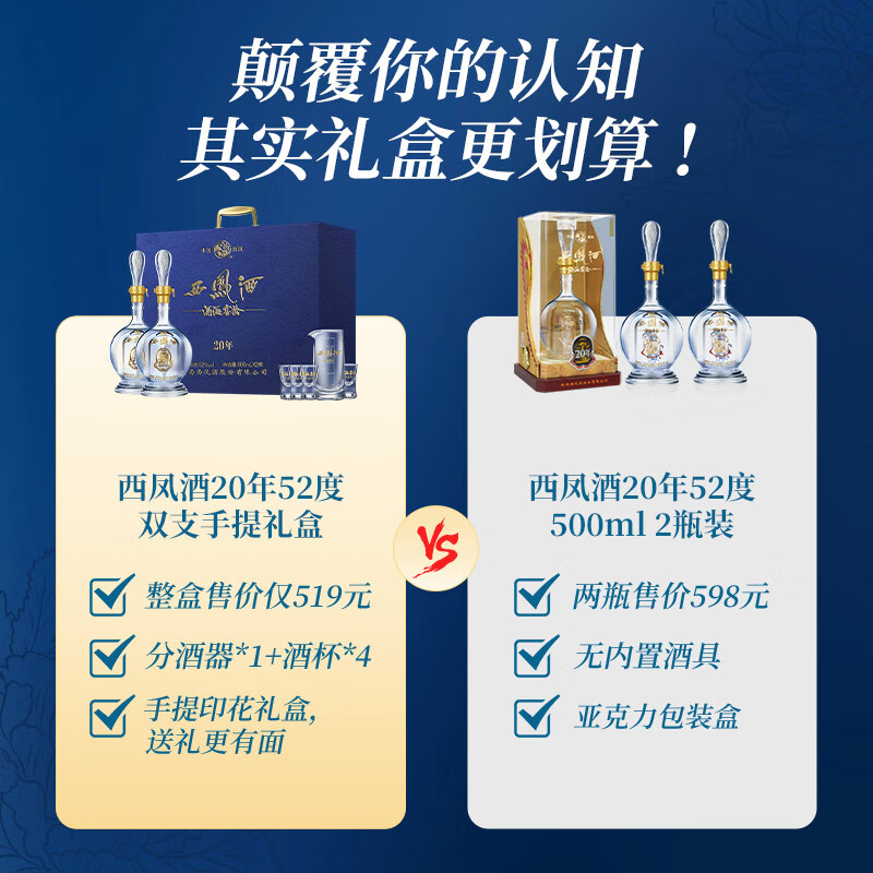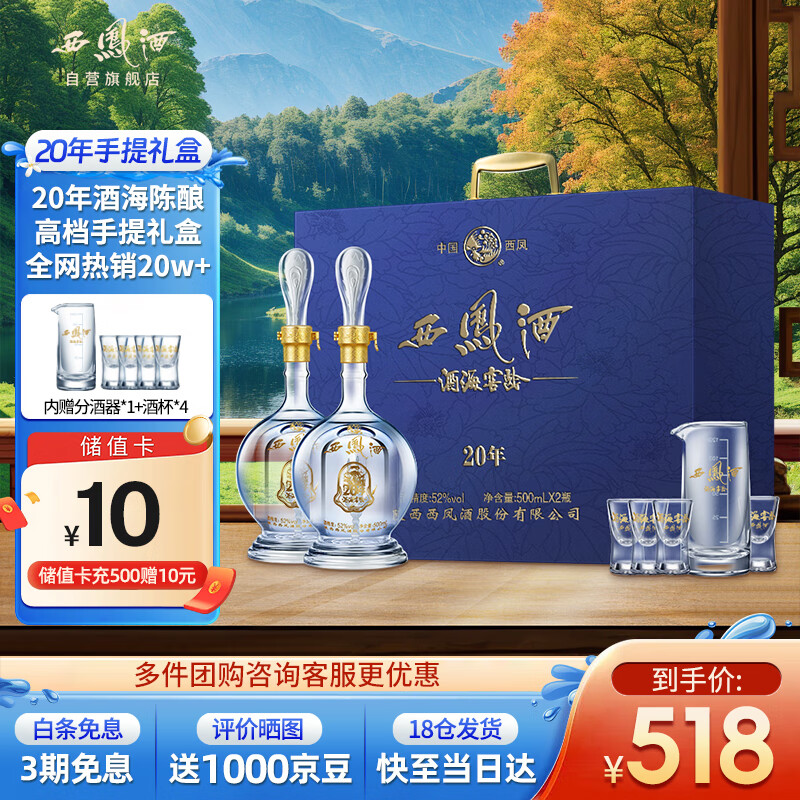 西凤酒 20年52度陕西纯粮凤香型白酒海窖龄婚庆喜宴请送礼盒装500mL*2价格:548.00元!