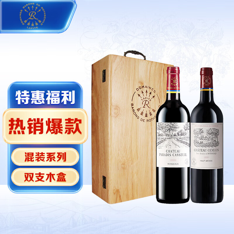 拉菲(LAFITE)古堡系列(凯萨天堂+遨迪诺)750ml 法国红酒葡萄酒双支礼盒价格:499.00元!