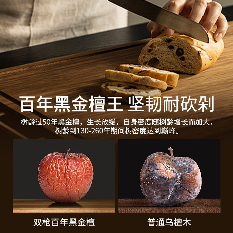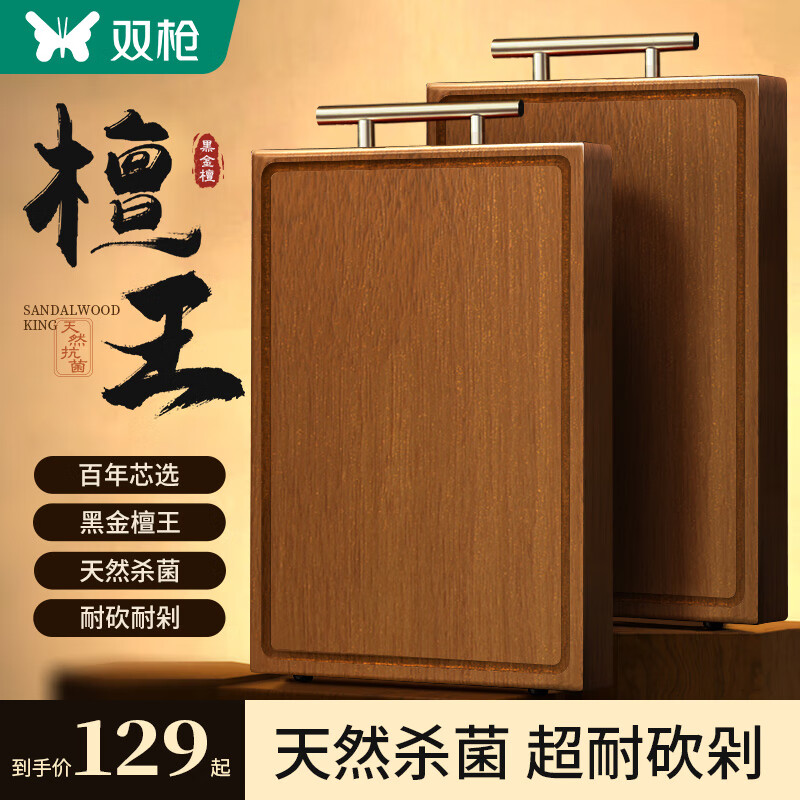 双枪抗菌黑金檀整木菜板 防霉砧板切菜板剁骨案板40*28*2.5cm价格:129.00元!