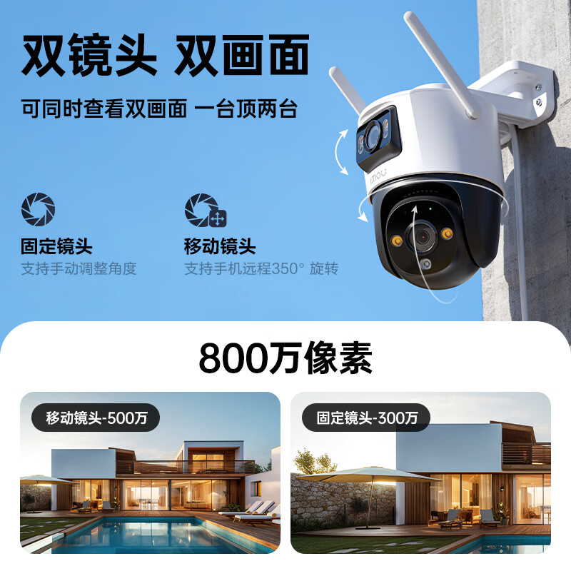 乐橙 监控摄像头 TS7双摄800万高清 商用家用 户外室外无线监控器360度无死角带夜视(双镜头双画面)价格:329.00元!
