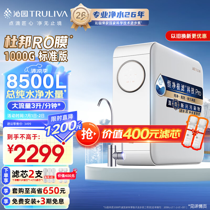 沁园(TRULIVA)小白鲸pro1000G净水器 鲜活水家用大通量厨下式直饮机 6年RO反渗透过滤器 UR-S51045价格:2299.00元!