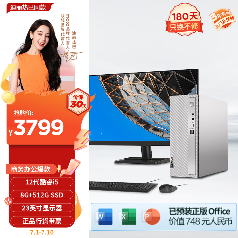 联想(Lenovo)天逸510S个人商务台式机电脑主机(酷睿12代i5-12400?8G 512G SSD wifi win11 )23英寸显示器价格:3799.00元!