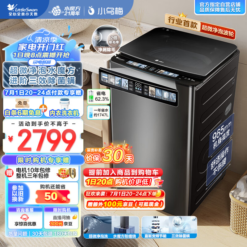 小天鹅(LittleSwan)波轮洗衣机全自动 小乌梅 【TB100V85PLUS] 水魔方防缠绕 超微净泡洗 直驱变频 炫彩大屏 10公斤价格:2899.00元!