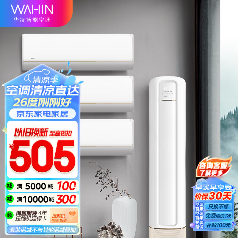 华凌空调新一级 3匹大出风口变频柜机 KFR-72LW/N8HB1A +新一级1.5匹变频挂机KFR-35GW/N8HE1Pro*3价格:11396.00元!