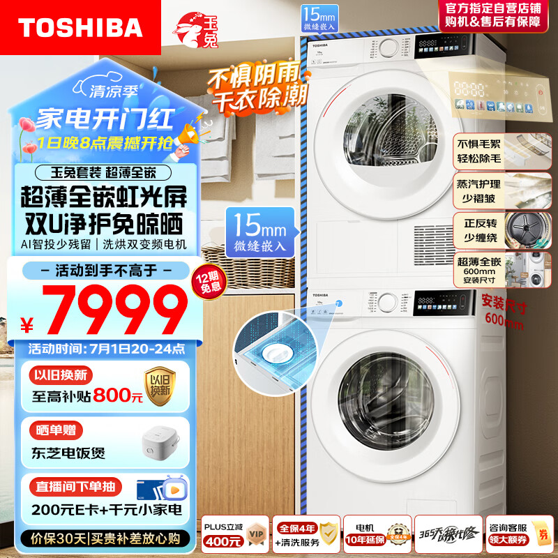 东芝(TOSHIBA)玉兔洗烘套装DG-10T13BF+DH-10T13BF 10KG超薄全嵌滚筒洗衣机+全自动热泵式变频烘干机 不惧毛絮价格:8199.00元!
