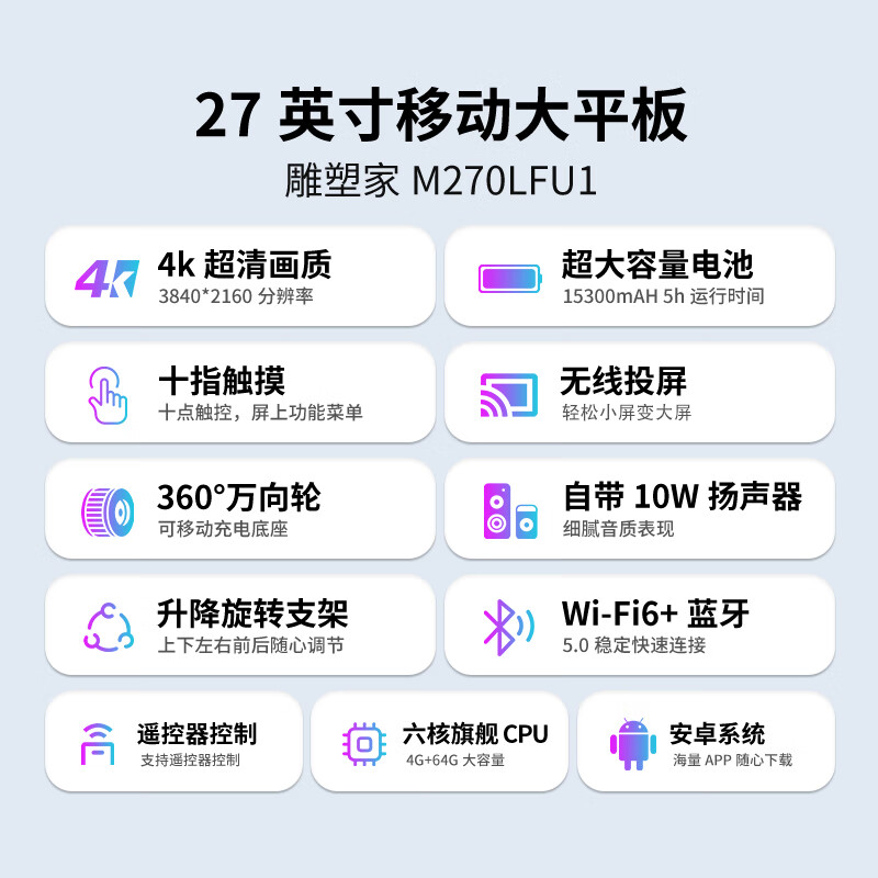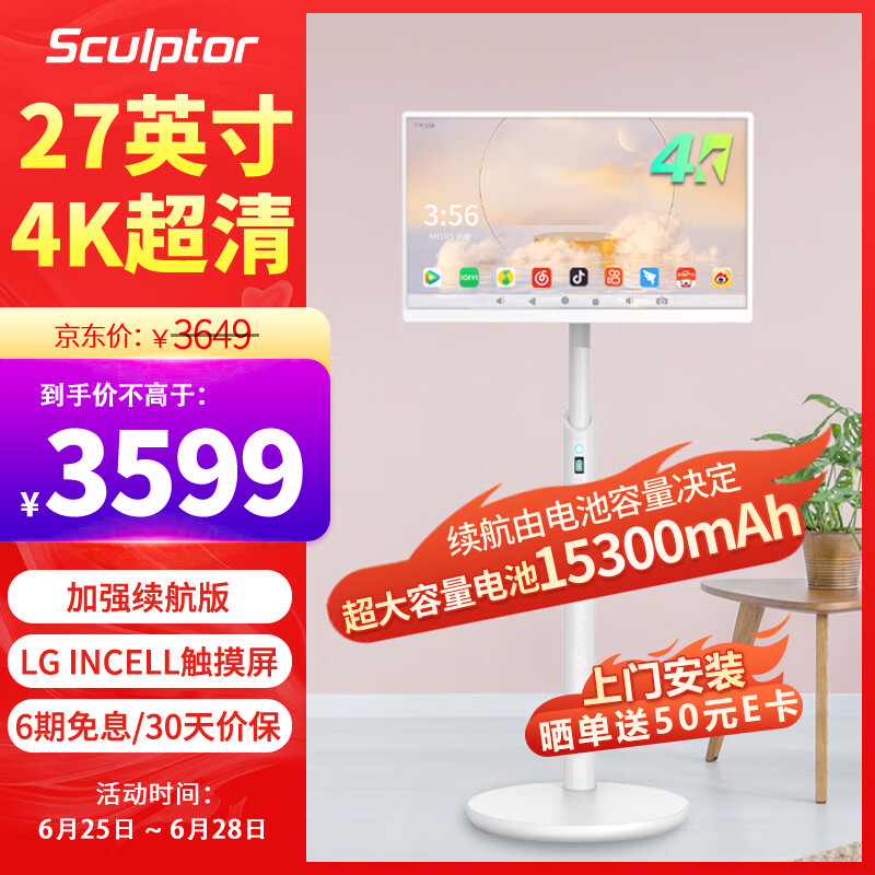 雕塑家 闺蜜机4K 移动随心屏大电池长续航 智慧屏27英寸IPS移动屏 触摸屏幕平板电视安卓系统显示器价格:3649.00元!