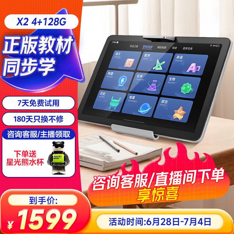 步步高学习机X2 4+128G 10.1英寸 护眼平板电脑 英语学习机 家教机 学生平板 点读机 早教机价格:1599.00元!